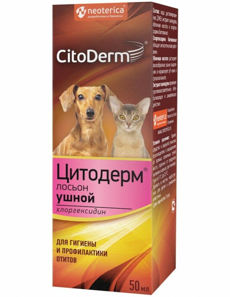 Ушной лосьон для гигиены и профилактики отитов у кошек и собак с хлоргексидином Цитодерм (Neoterica), 50мл Хлоргексидин