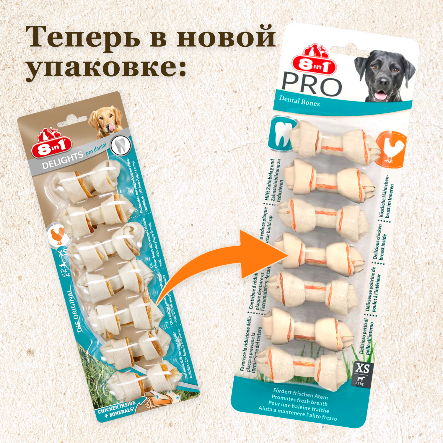 8in1 PRO DENTAL DELIGHTS XS косточки с куриным мясом для собак малых пород, с добавлением минералов, 7.5 см