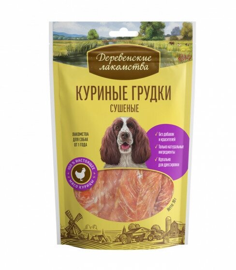 Лакомства деревенские для собак куриные грудки сушеные (90 гр)