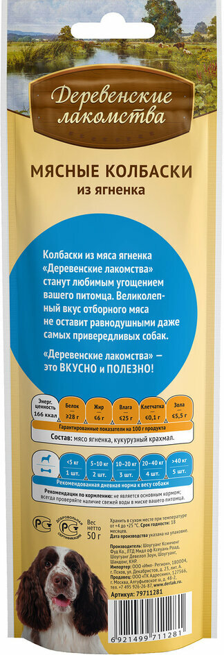 Лакомство Деревенские лакомства Мясные колбаски для собак с ягненком 45г 7шт 79711281