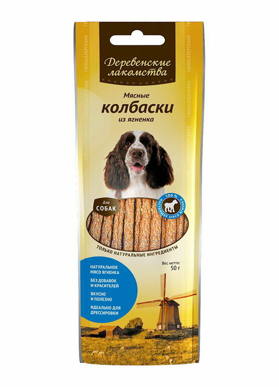 Деревенские лакомства "Мясные колбаски из ягненка" для собак пакет, 45 гр