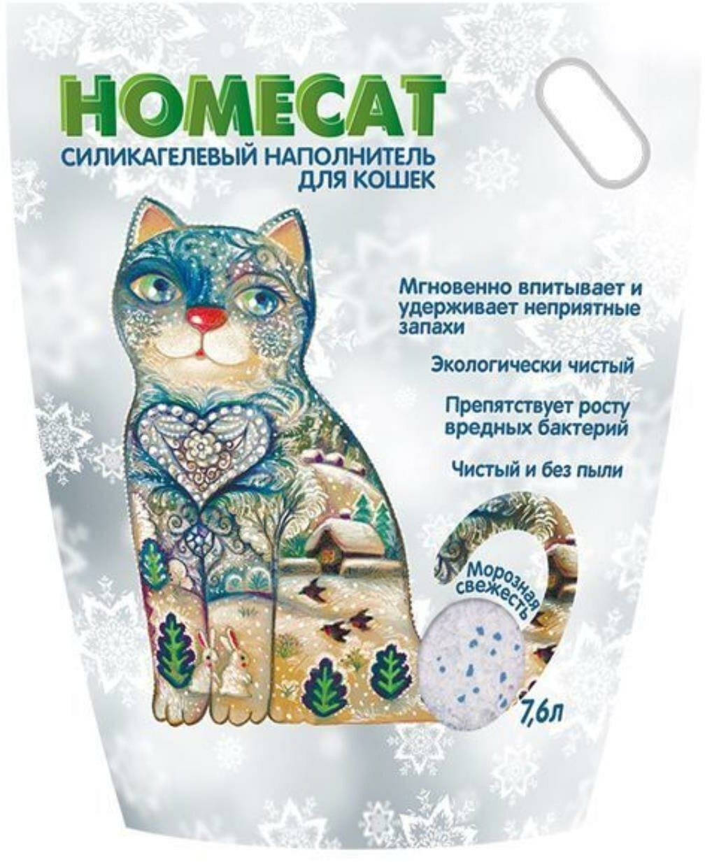 Купить Наполнитель для кошачьего туалета Homeсat / Хоумкэт cиликагелевый впитывающий, гранулы с ароматом морозной свежести 7.6л / товары для животных