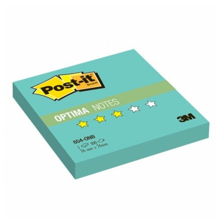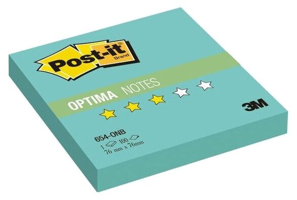 3M Бумага для заметок с липким слоем POST-IT OPTIMA ( 76 x 76 мм) 100 л. Весна, бирюзовый неон 654-ONB
