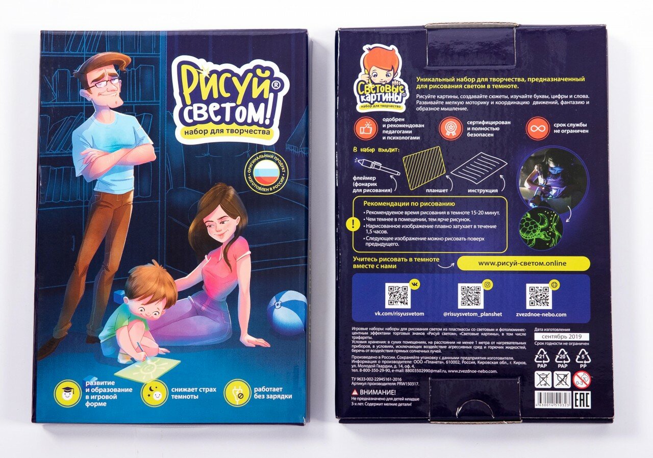 Набор для творчества и рисования светом, комплект 2 шт., планшет А5, ручка-фонарик, рисуй светом РС-323