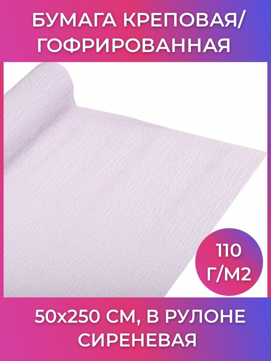 Бумага гофрированная (креповая) Для Флористики 110 г/м2, сиреневая, 50х250 см, Остров Сокровищ, 112547