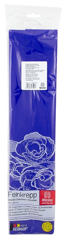 Купить Werola 12800-122 Бумага крепированная 50*250 см, 32 г/м2, растяжение 55%, в индивидуальной упаковке werola, фиолетовый