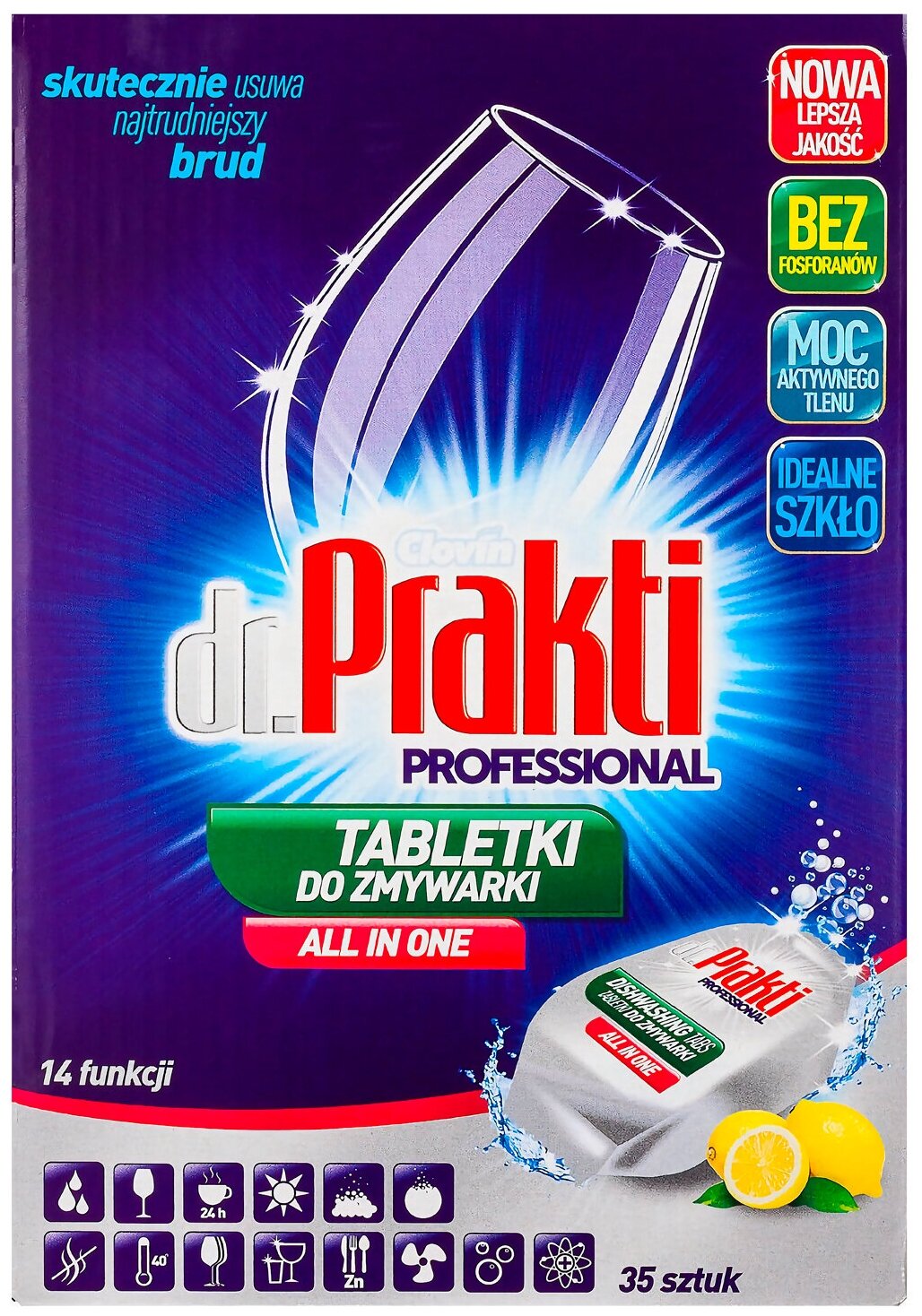 Купить Clovin Dr. Prakti Professional All In One Таблетки для посудомоечных машин в водорастворимой оболочке с ароматом лимона 35 шт 700 гр