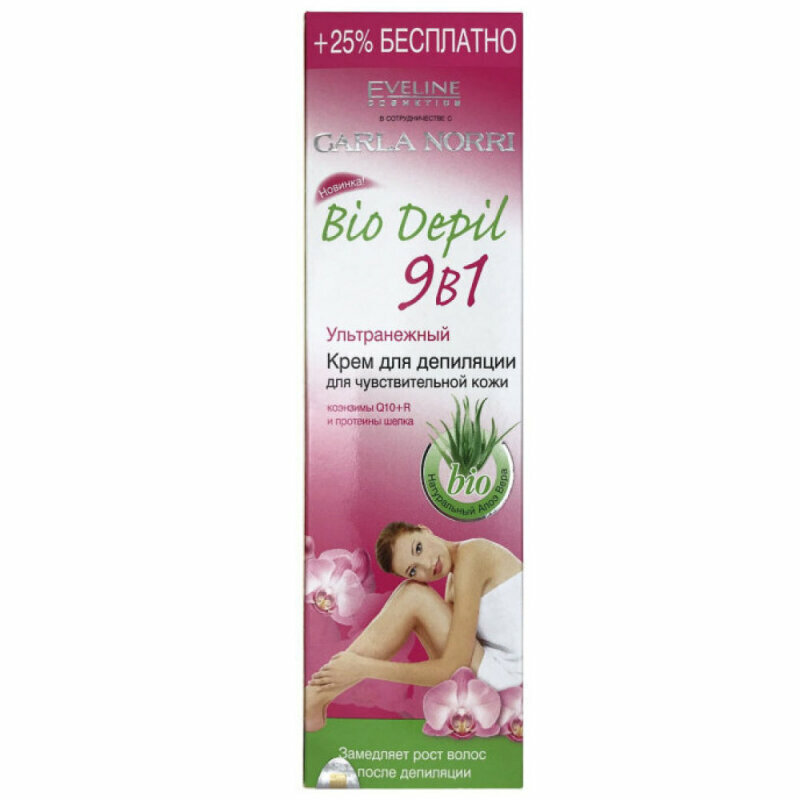 EVELINE.Ультранежный крем для депиляции для чувствительной кожи 9в1 bio depil 125мл