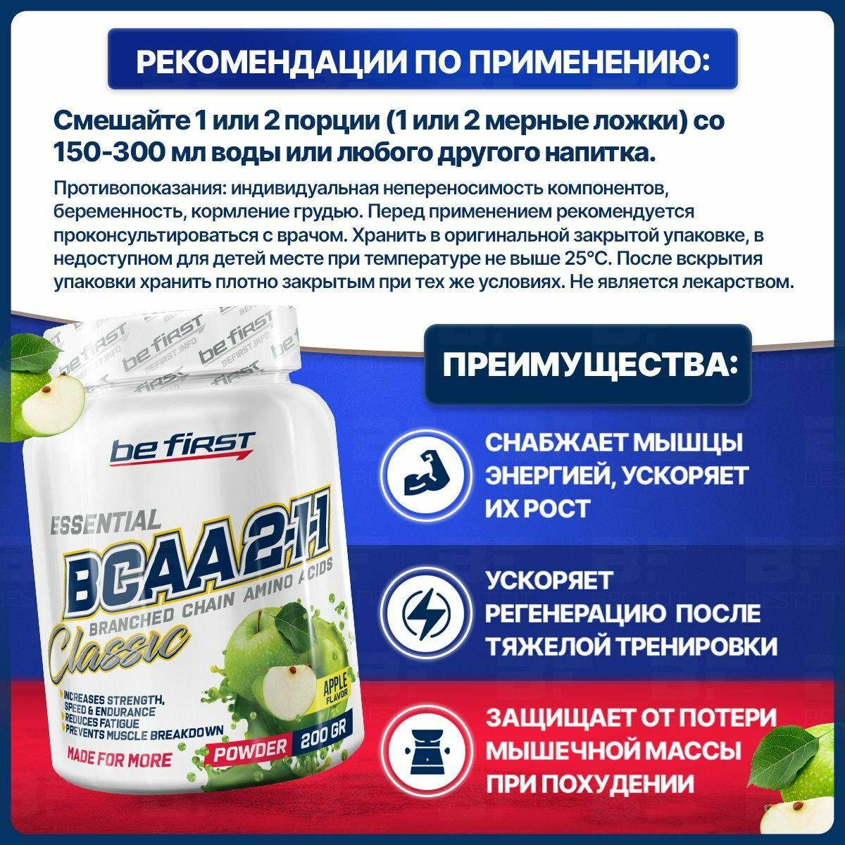 BeFirst, BCAA 2:1:1 Classic powder, 200г (яблоко)