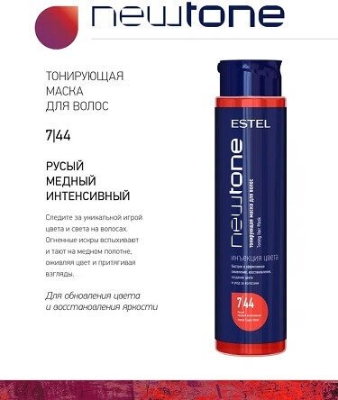 Ниже Вы можете прочитать отзывы на ESTEL NEWTONE тонирующая маска для волос 7/44 400 МЛ, ознакомится с подробными характеристиками, посмотреть интересные обзоры и фотографии на ESTEL NEWTONE тонирующая маска для волос 7/44 400 МЛ.