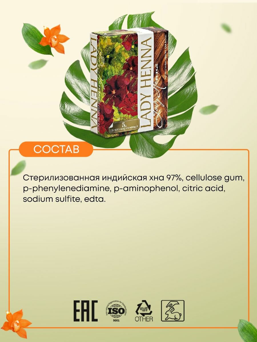 Краска для волос на основе хны "Светло-коричневый" (№5) LADY HENNA 60 г