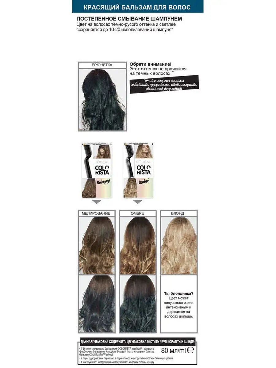 L'Oreal Paris красящий бальзам Colorista Washout для волос светло-каштанового оттенка и светлее, оттенок Волосы Деним, 80 мл интересное: