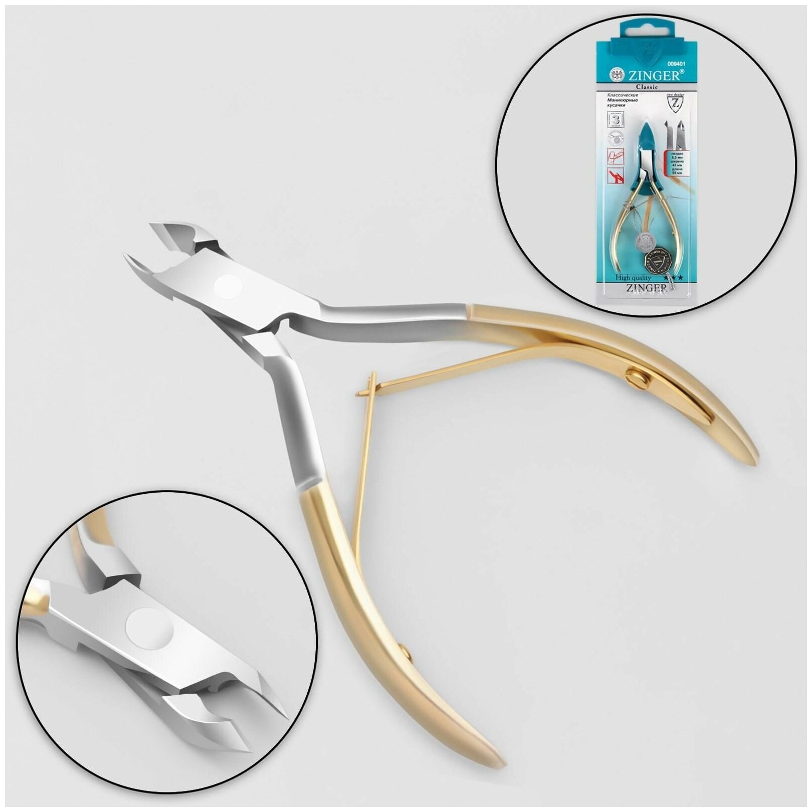 ZINGER Кусачки маникюрные для кутикулы, 10 см, длина лезвия - 5 мм, цвет золотистый/серебристый, B-188 (450)-HG-SH-LJ