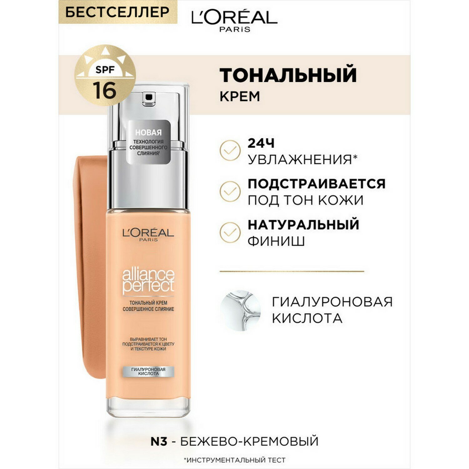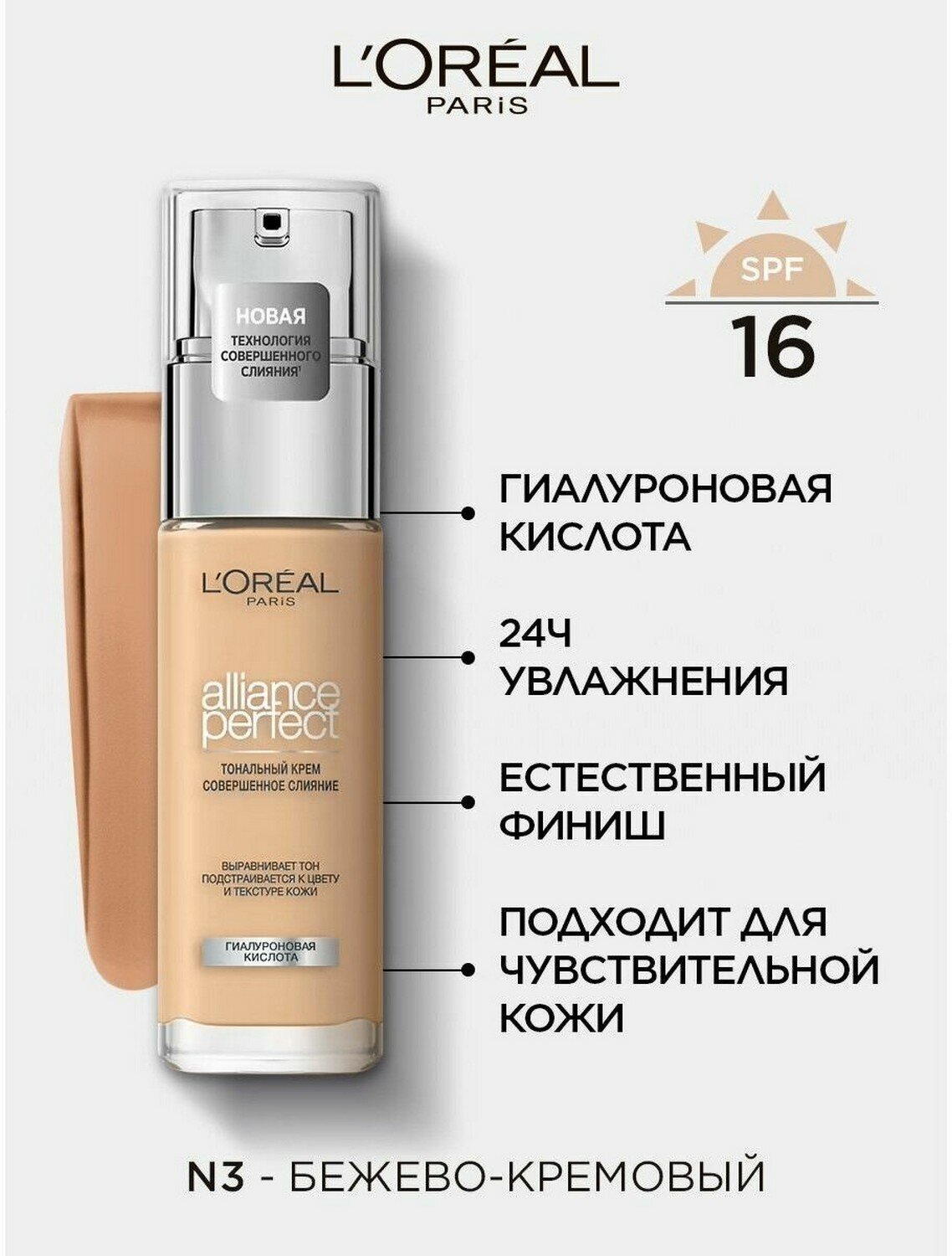 Разное shop.a-quasar.com Тональный крем L'Oreal Alliance Perfect Совершенное слияние, тон N3, кремово-бежевый, 30 мл