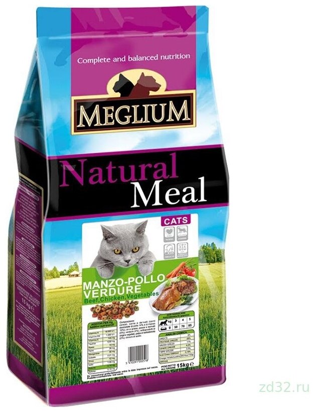 СохранитьКорм Meglium Natural Meal Chicken, Beef & Vegetables для кошек, с говядиной, курицей и овощами, 15 кг интересное: