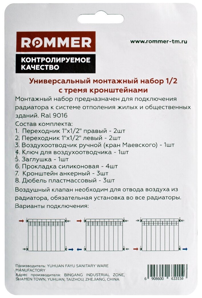 универсальный монтажный набор 1/2 с тремя кронштейнами ROMMER