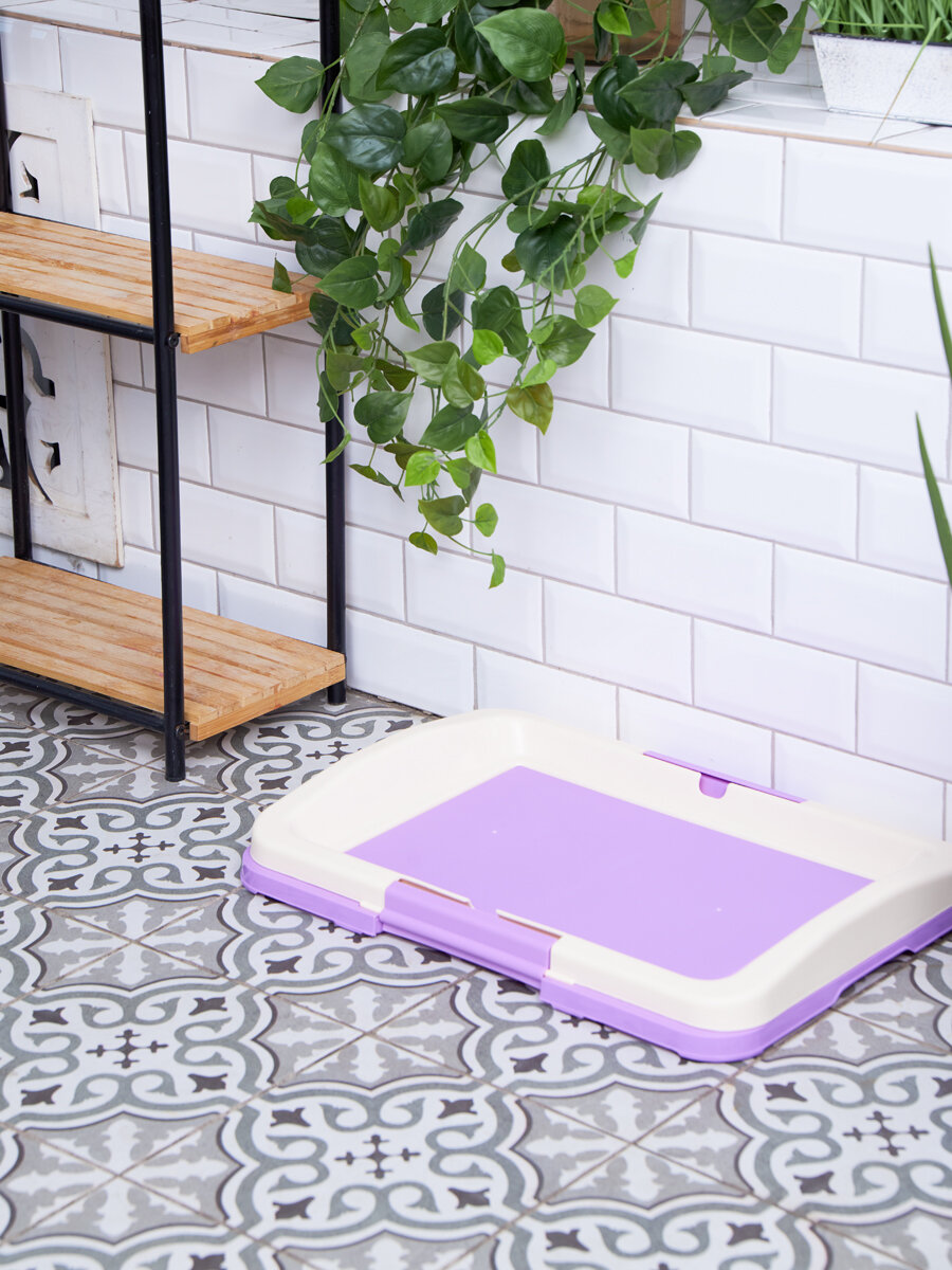 Туалет лоток для собак Zoo One под одноразовую пеленку (японский стиль), малый 47*34*6 см, фиолетовый + белый, P102-06