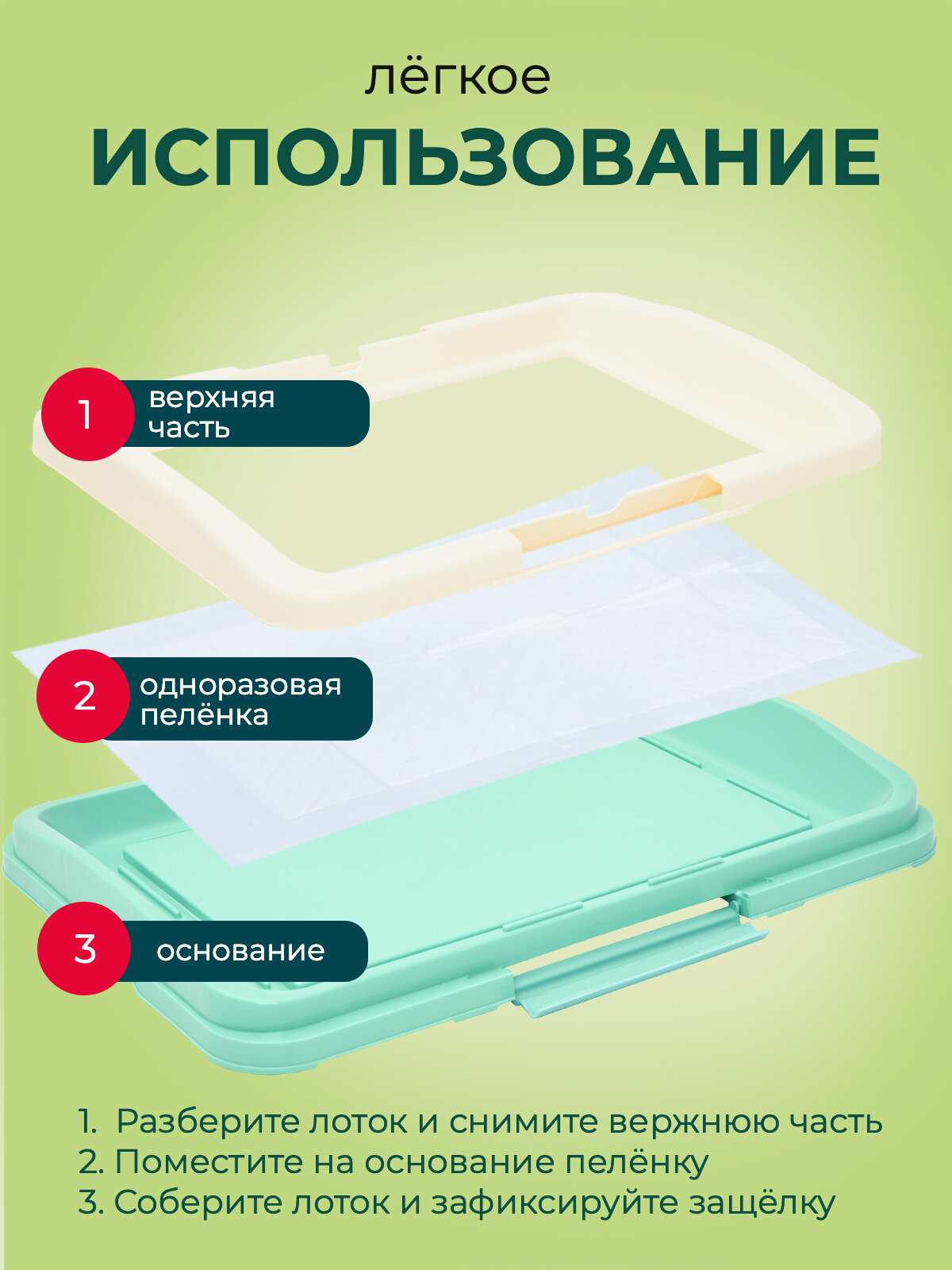 Туалет лоток для собак Zoo One под одноразовую пеленку (японский стиль), малый 47*34*6 см, зеленый + белый, P102-01