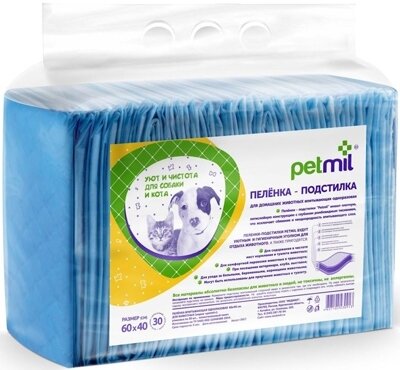 Пеленки впитывающие для животных Petmil 60 х 40 см 30 шт (1 шт)