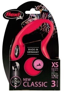 FLEXI NEW CLASSIC CORD – Флекси тросовый поводок-рулетка для животных, 3 м, размер XS, розовый (1 шт)