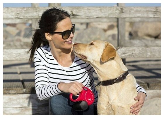 | Плюсы: | Работает хорошо, мягко, не заедает, лёгкая рулетка и удобная в руке. Пёсику нравится. |