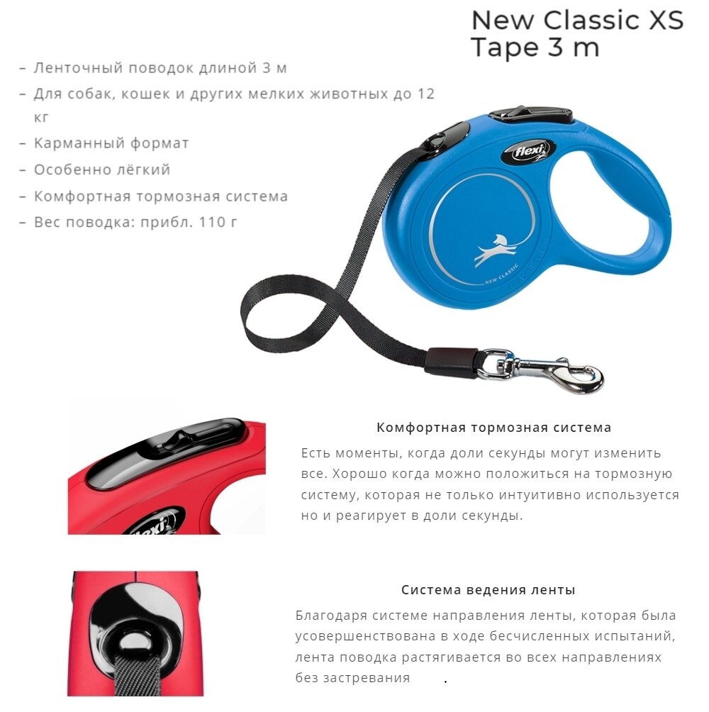 Поводок-рулетка FLEXI New CLASSIC XS, 3 м, 12 кг, синий