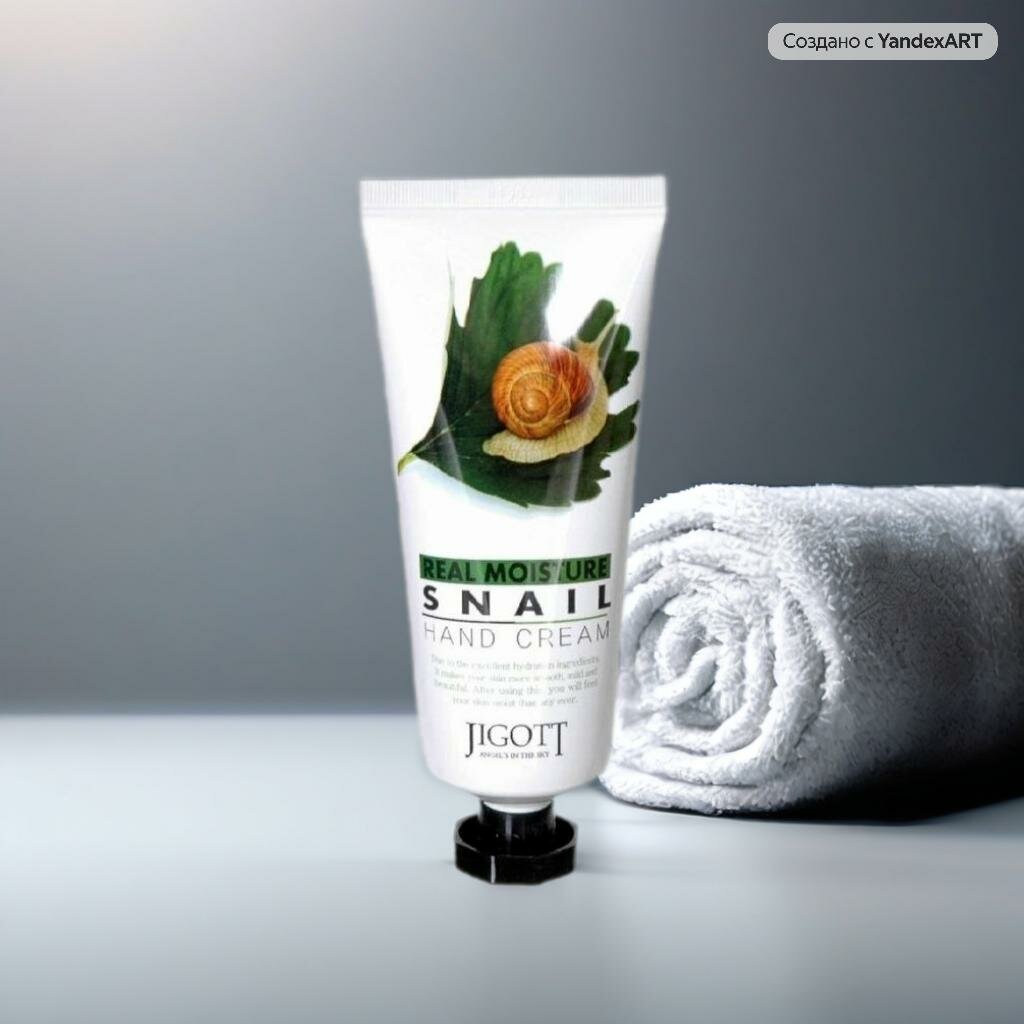 Jigott, Питательный крем для рук Real Moisture Snail, 100 мл, 100г