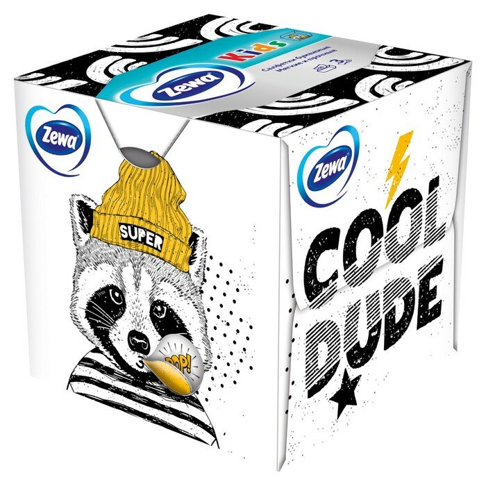 ZEWA Салфетки для лица 3-х слойные KIDS Зоопарк, 60шт (куб)
