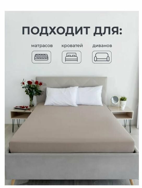 Простыня на резинке Бежевая, 120х200х20, трикотаж, 100% хлопок