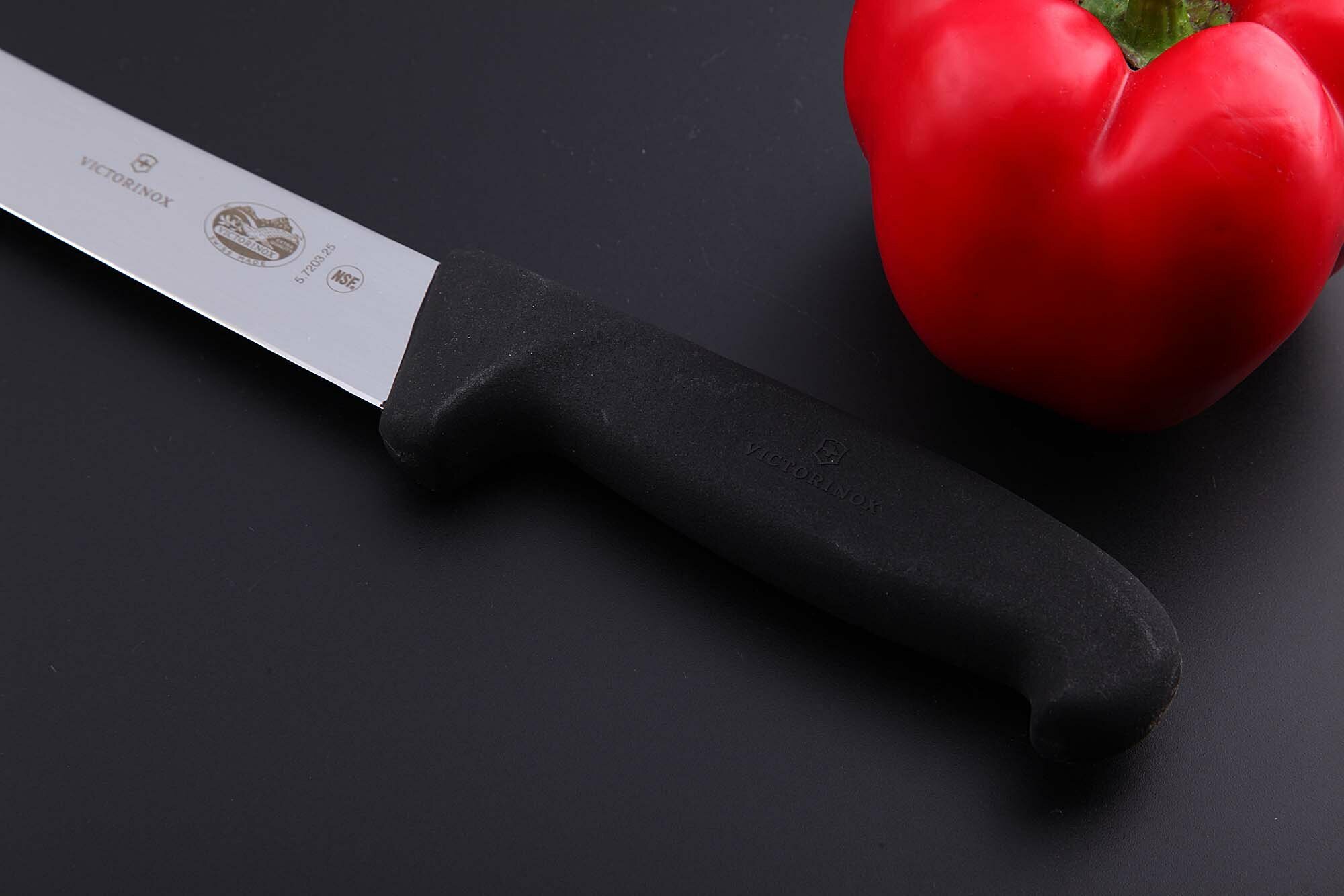 Нож кухонный Victorinox Fibrox (5.7203.25) стальной разделочный лезв.250мм прямая заточка черный 5.7