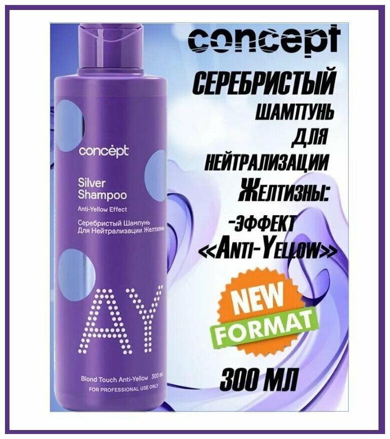 Concept Anti-Yellow Silver Blond Shampoo - Концепт Анти Еллоу Сильвер Блонд Серебристый Шампунь для светлых оттенков, 300 мл -