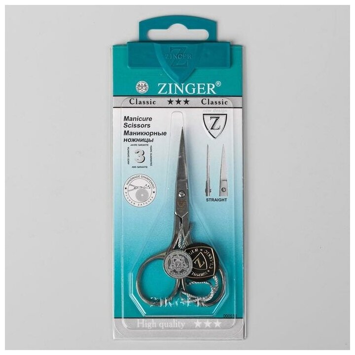 Ножницы маникюрные, прямые, с ручной заточкой Zinger