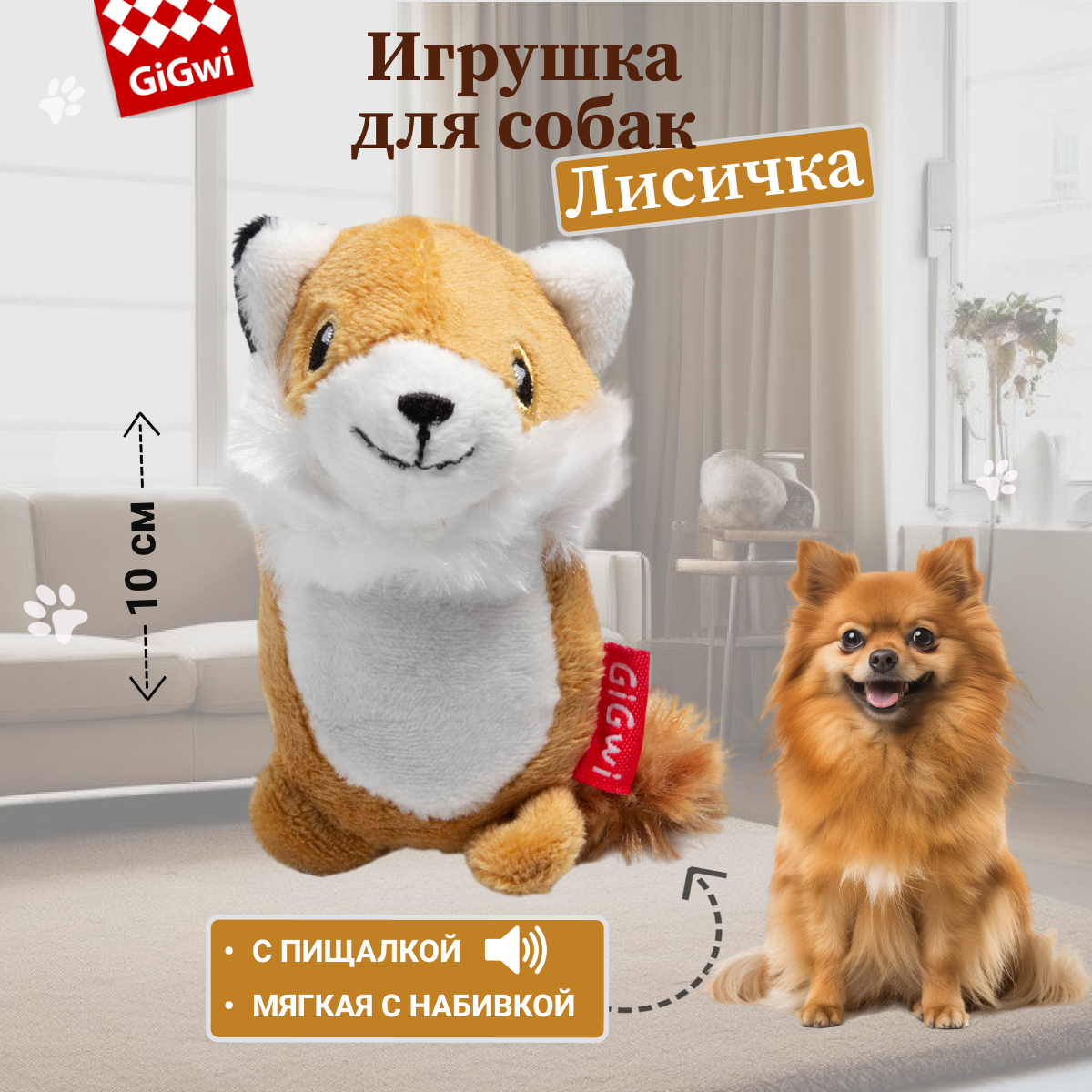 Gigwi Игрушка для Собак Лисичка с 2-Мя Пищалками