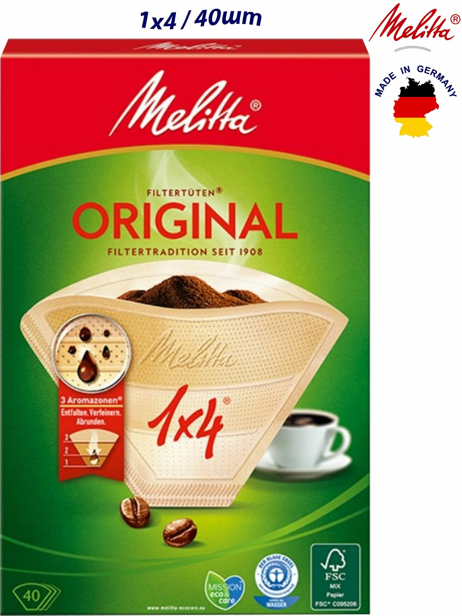 Melitta Original, Brown фильтры для заваривания кофе, 1х4/40