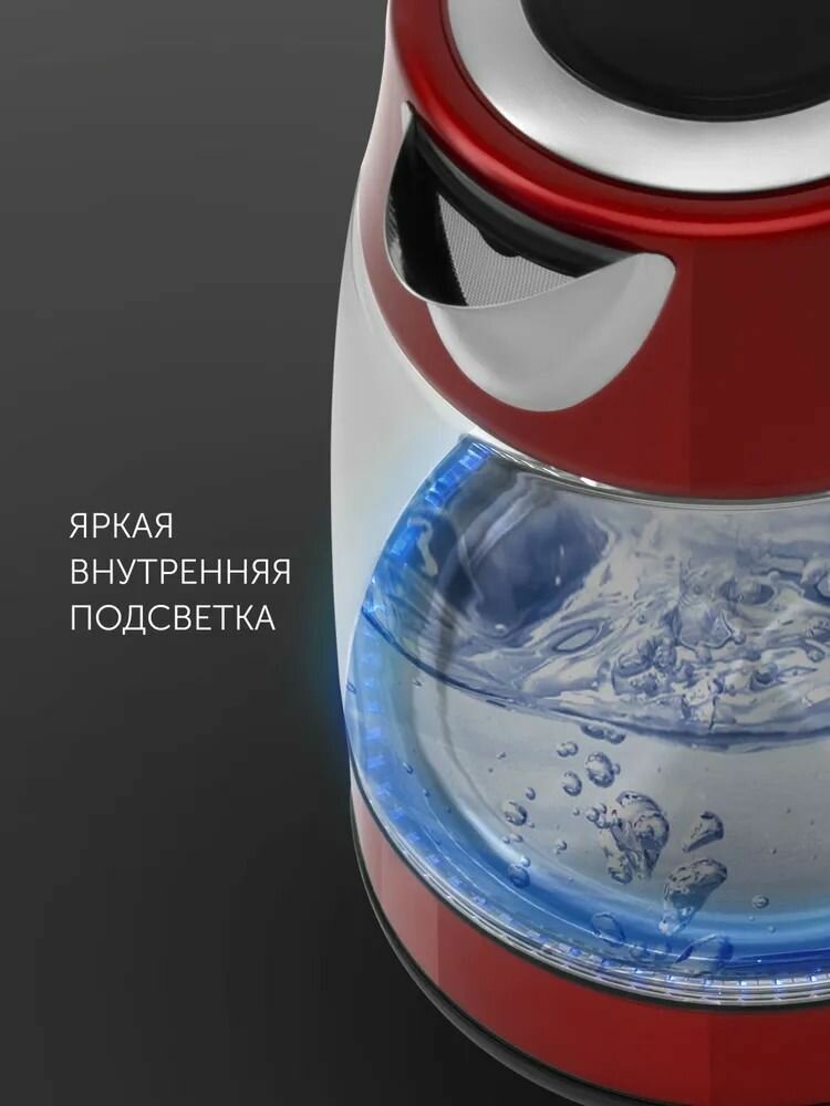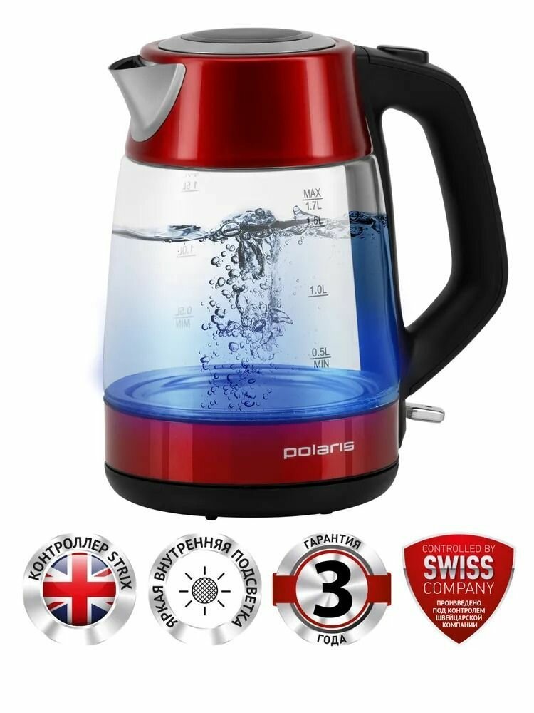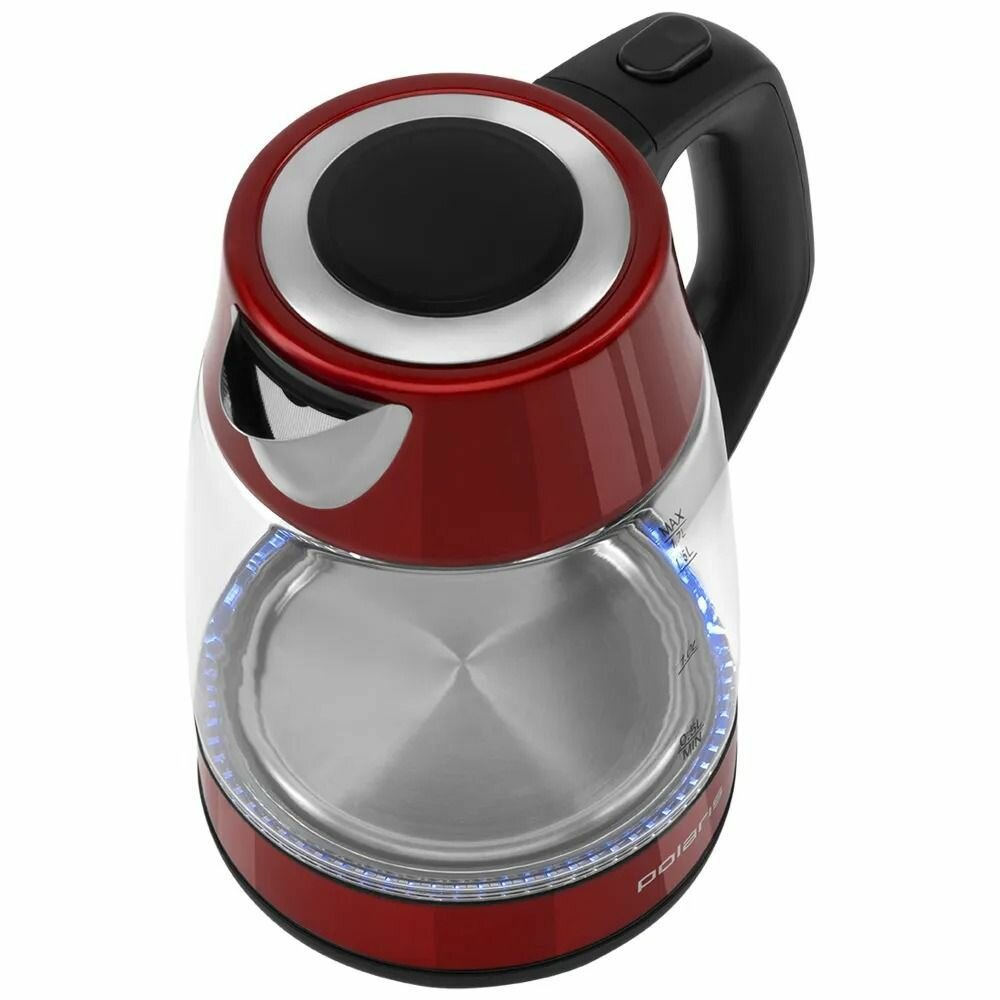 Стеклянный чайник электрический Polaris PWK 1760CGL, 1,7 л, пластик красный