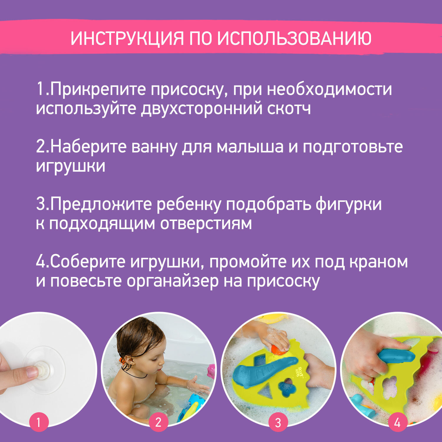 | Минусы: | в комплекте не было 2 наклеек для присосок, хотя по инструкции они там должны были быть, контейнер часто падает со стены, поместить в него игрушки практически невозможно, туда может влезть пара книг для ванны и максимум 4 маленькие резиновые пищалки. Не более того, так что вообще бесполезная вещь |