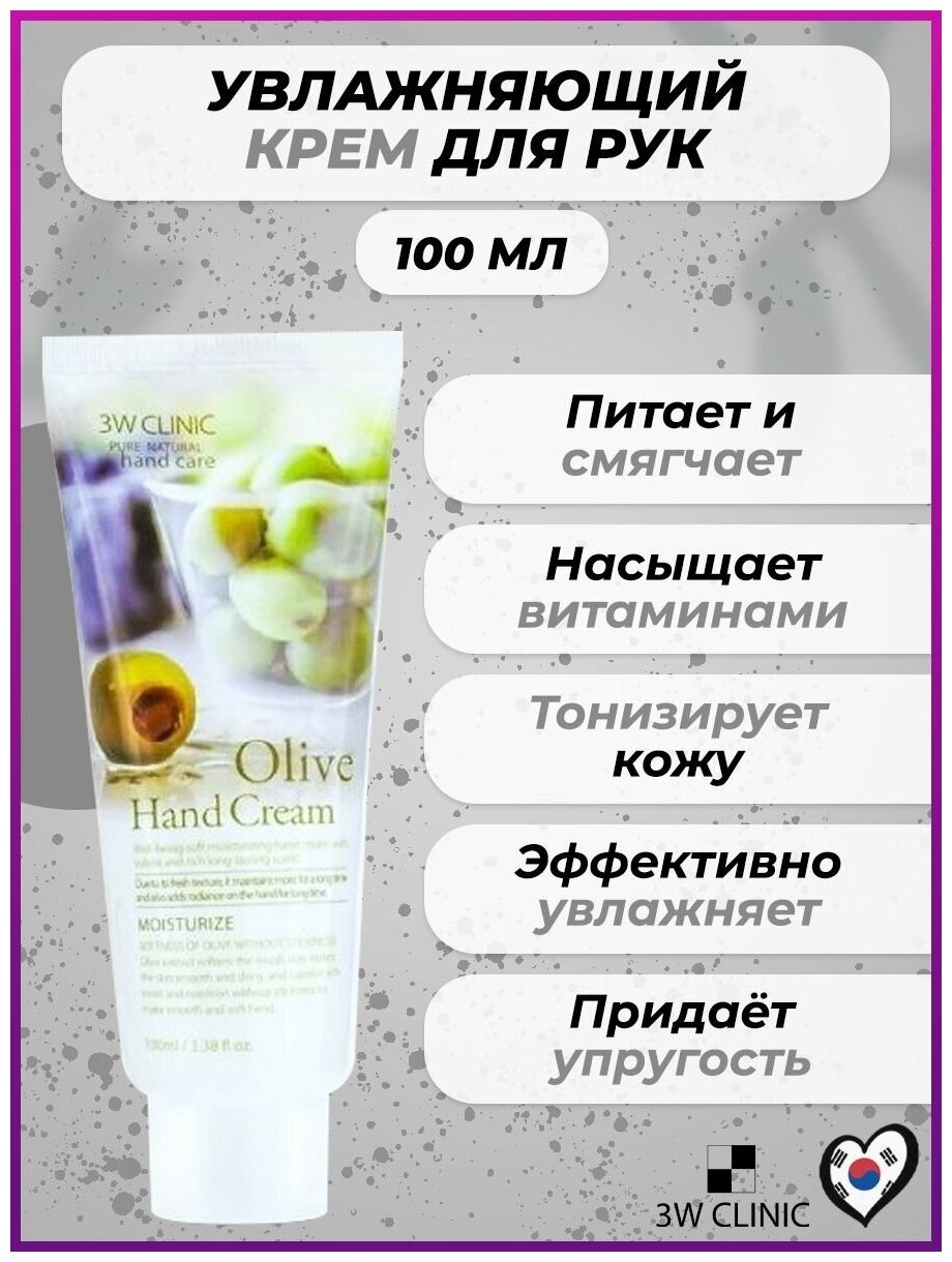 Купить 3W CLINIC Moisturizing Olive Hand Cream Увлажняющий крем для рук с экстрактом оливы 100мл