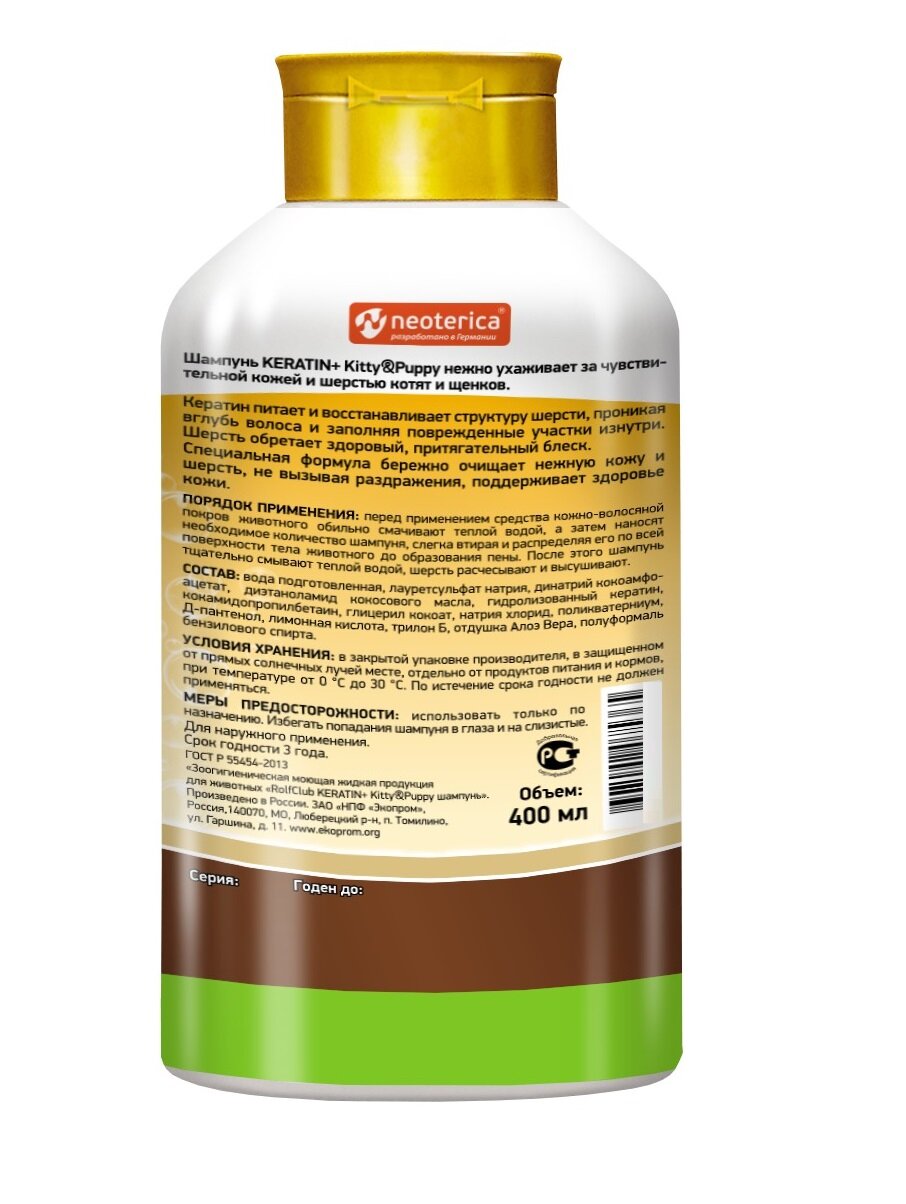 Рольф Клуб R506 Кератин+ Шампунь Kitty&Puppy дкотят и щенков 400мл