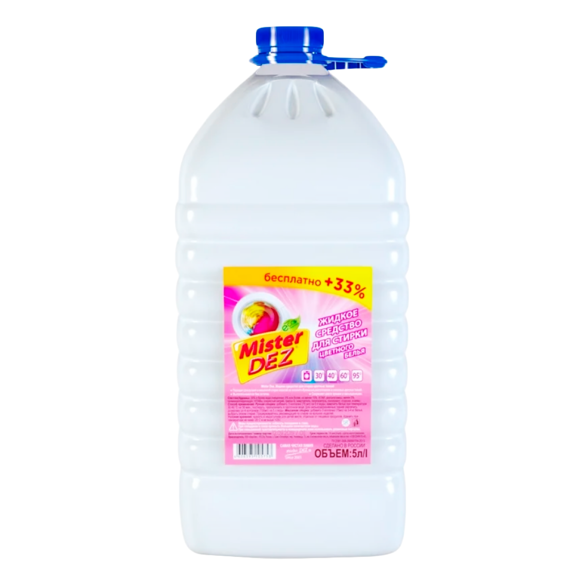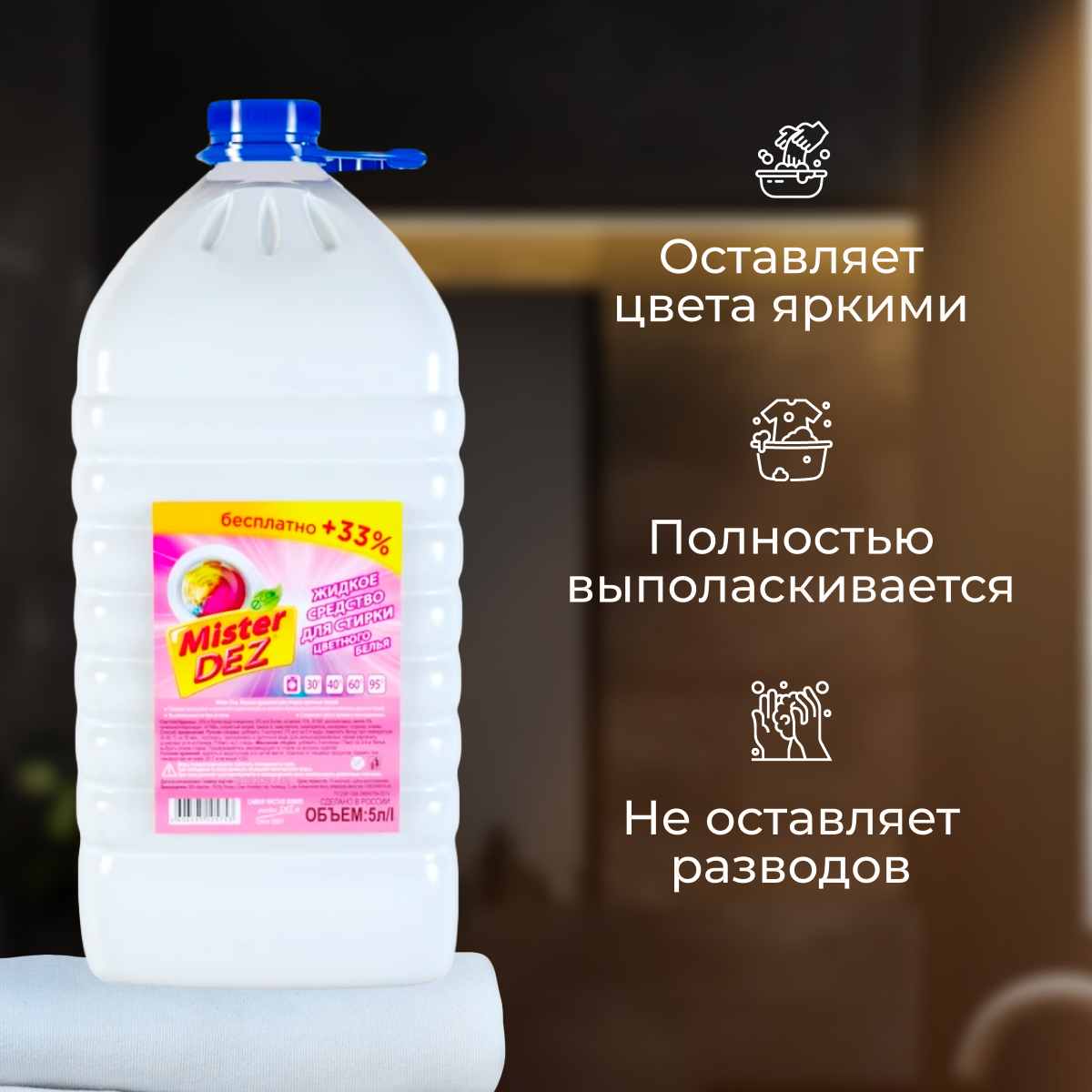 Жидкость для стирки Mister Dez для цветных тканей, 5 л, бутылка