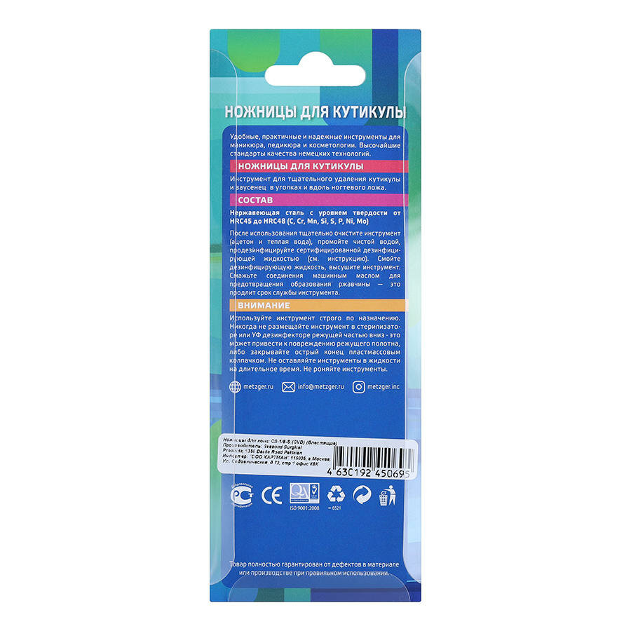 Metzger Ножницы маникюрные, для кутикулы, загнутые, узкие, 10 см, на блистере, цвет серебристый, CS-1/8-S (CVD)