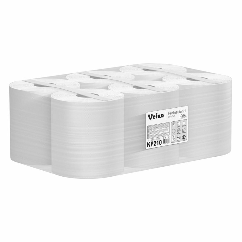 KP210 Бумажные полотенца в рулонах с центральной вытяжкой Veiro Professional Comfort белые однослойные (6 рул х 200 м)