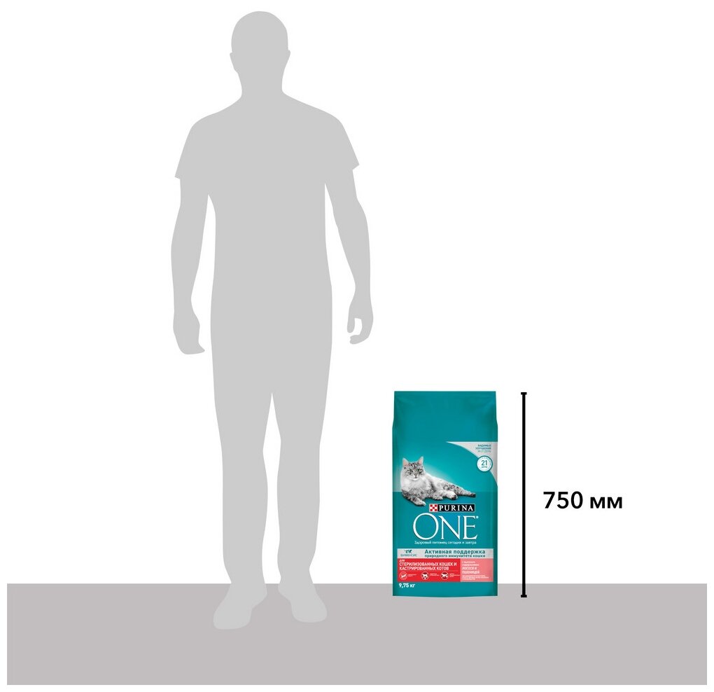PURINA ONE 9,75 кг сухой корм для стерилизованных кошек и кастрированных котов, с высоким содержанием лосося и пшеницей 1 шт