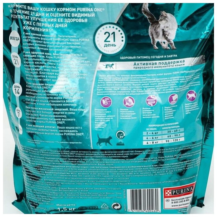 Сухой корм Purina ONE для кошек с чувствительным пищеварением, с высоким содержанием индейки, 1,5 кг
