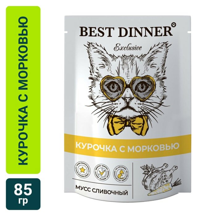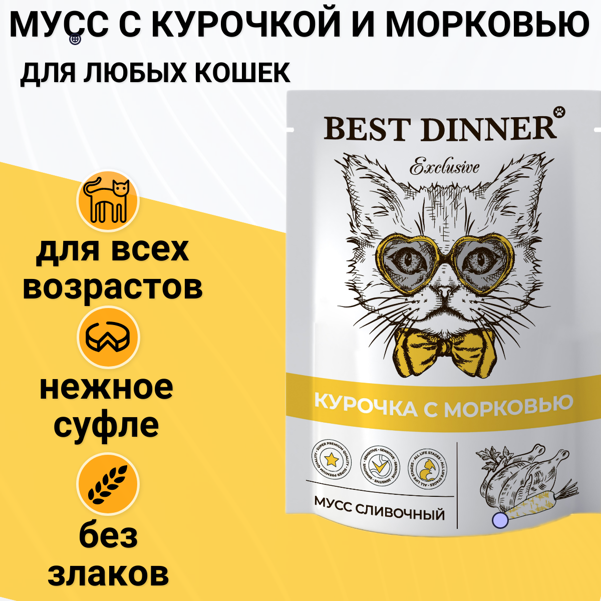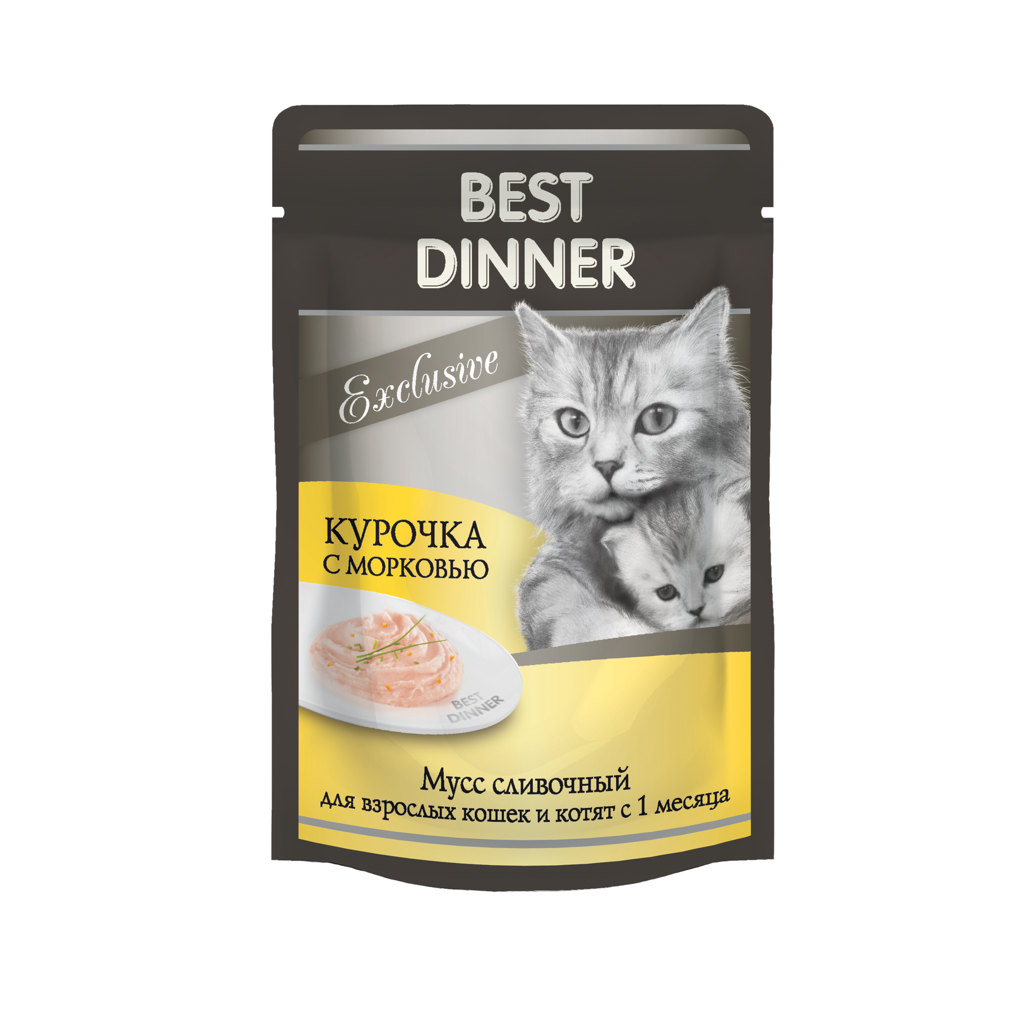 Best Dinner Exclusive консервы для кошек и котят с 1 месяца мусс сливочный с курочкой и морковью пауч 24х85г