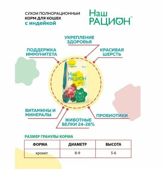 Наш Рацион корм сухой для кошек с Индейкой 10кг