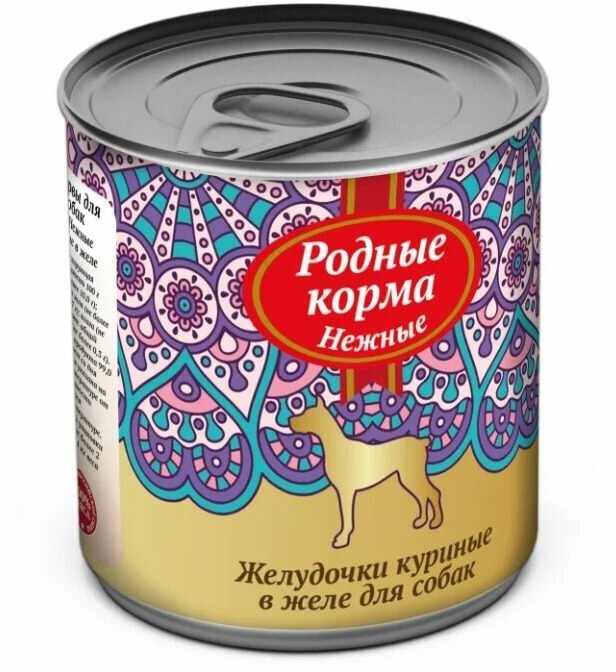 Купить Консервы Родные Корма для собак, нежные желудочки куриные в желе 240 г .
