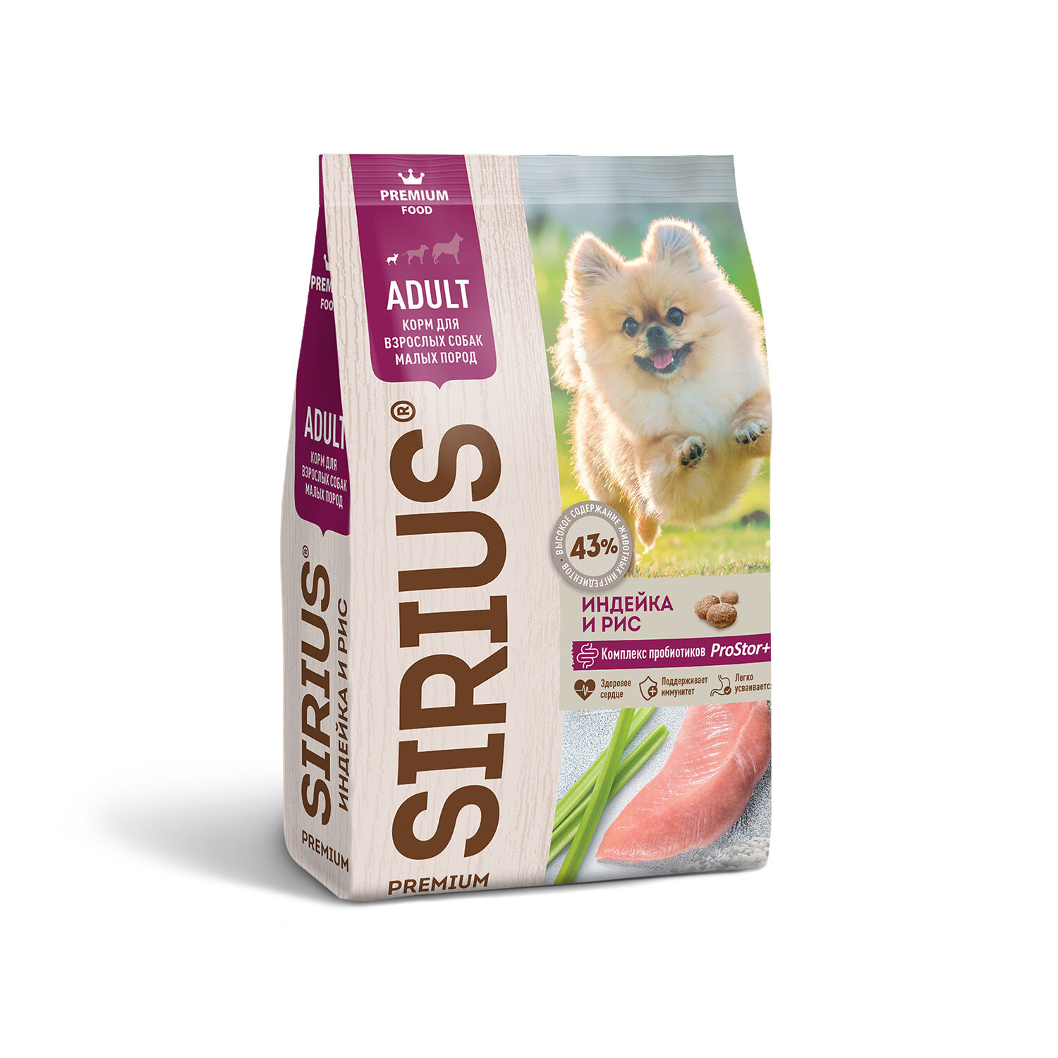 SIRIUS для взрослых собак маленьких пород с индейкой (2 + 2 кг)