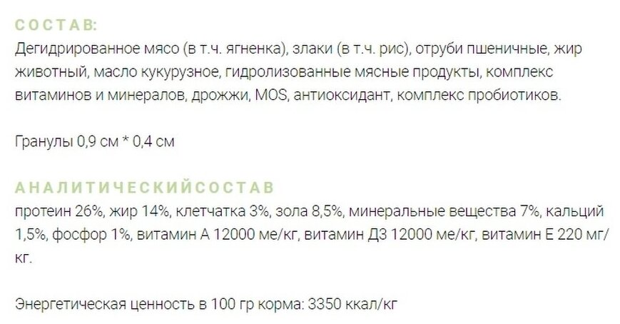 | Вкус | ягненок |