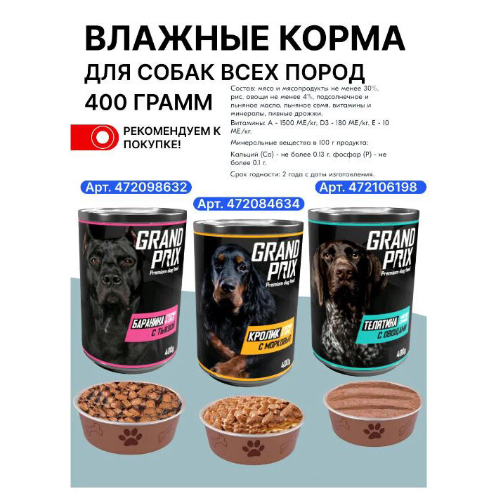 | Плюсы: | Собака ест хорошо, диареи не вызывает |