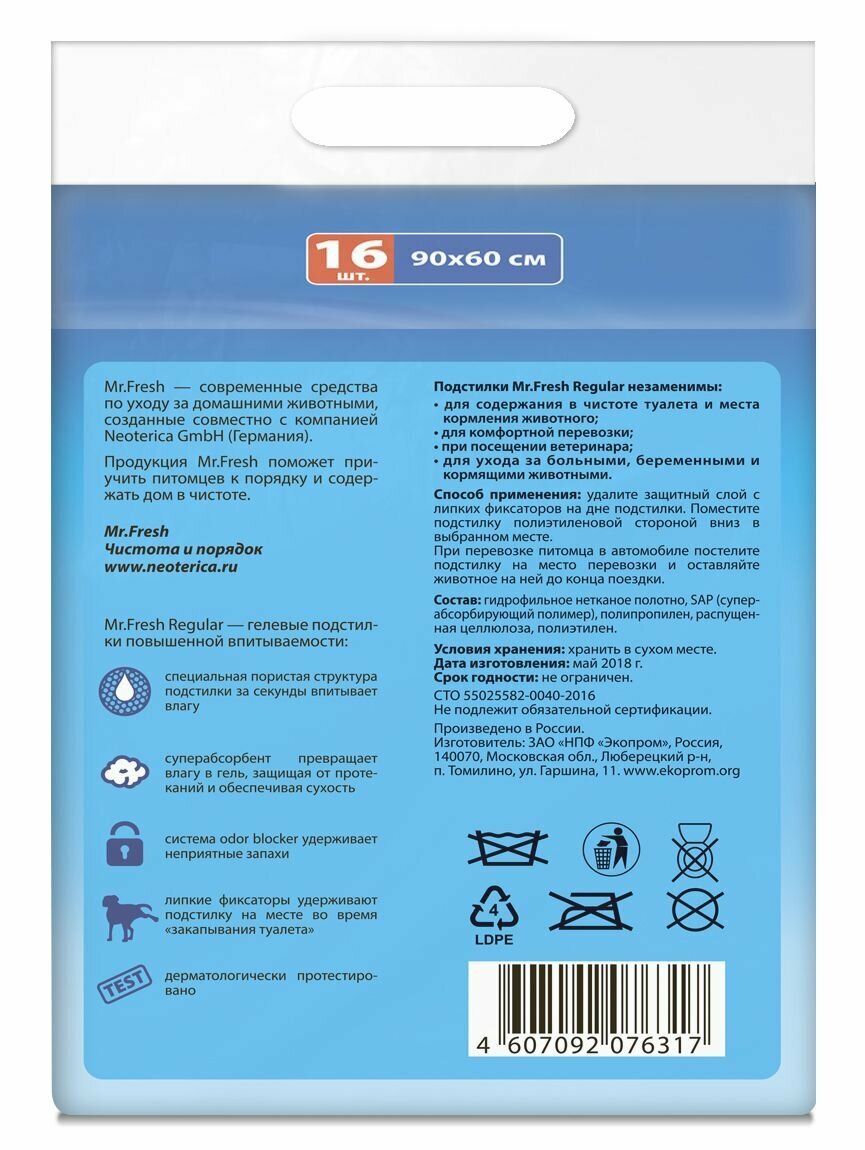 Mr.Fresh Пеленки Regular для ежедневного применения 90 х 60 см., 16 шт.